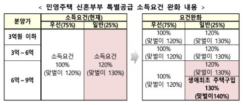 생애 최초로 주택을 구입하는 신혼부부의 소득기준이 완화됩니다.