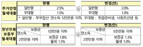 - 주거안정 청년보증부월세대출 금리 인하 : 약 4.8만원/년 이자경감