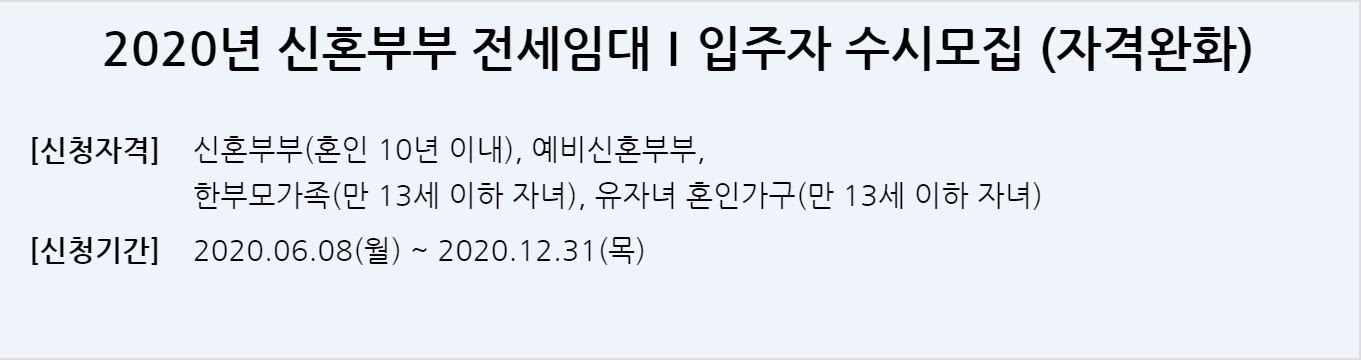 자격 완화! LH 2020 신혼부부 전세임대Ⅰ입주자 수시 모집